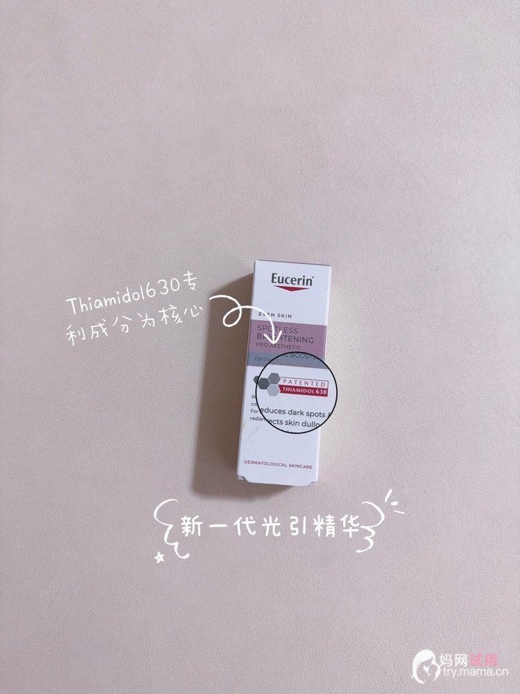 简洁明了的包装📦能看到这个精华独有的核心成分Thiamidol630、特有的微晶透皮技术等等硬干货,轻轻一挤,是晶露的质地、非常水润清爽💦