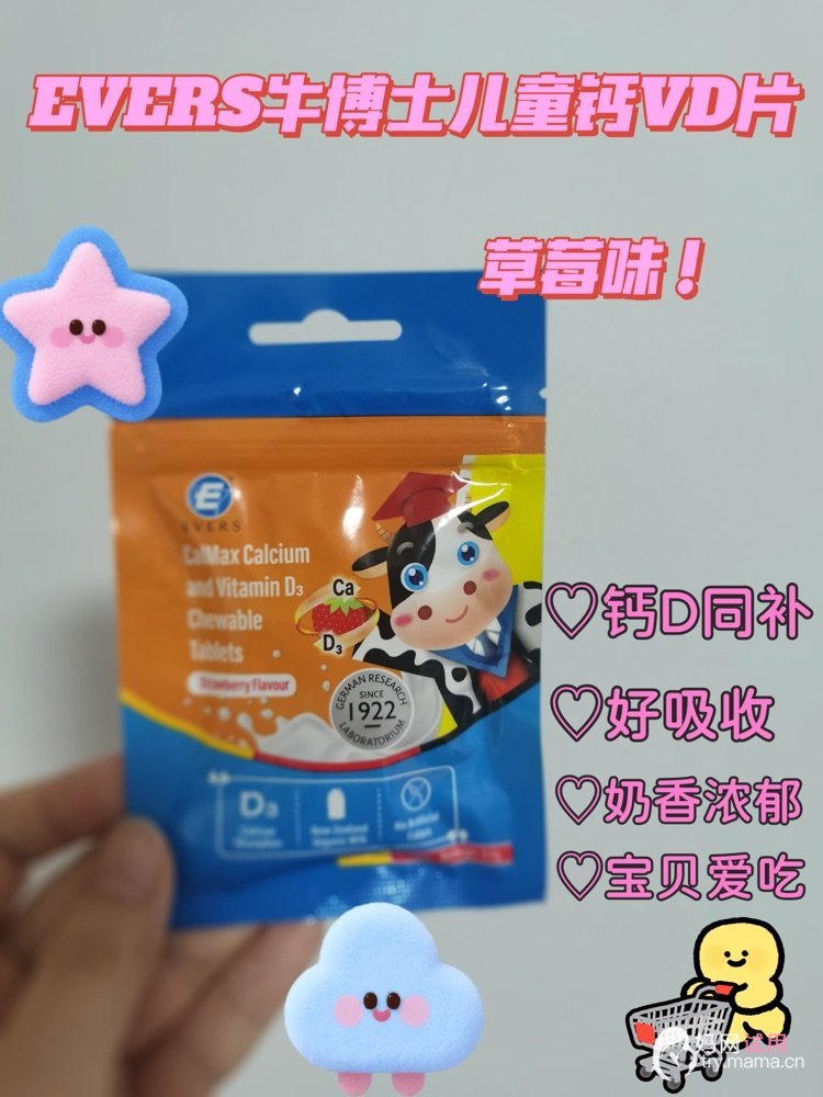 🌟🌟🌟最近为宝宝淘到了补钙好物:EVERS牛博士儿童钙VD片,这款钙片是草莓味,卡通小牛造型,加上来自新西兰的天然牛奶,浓郁的奶香,宝宝看到都要主动吃呢!