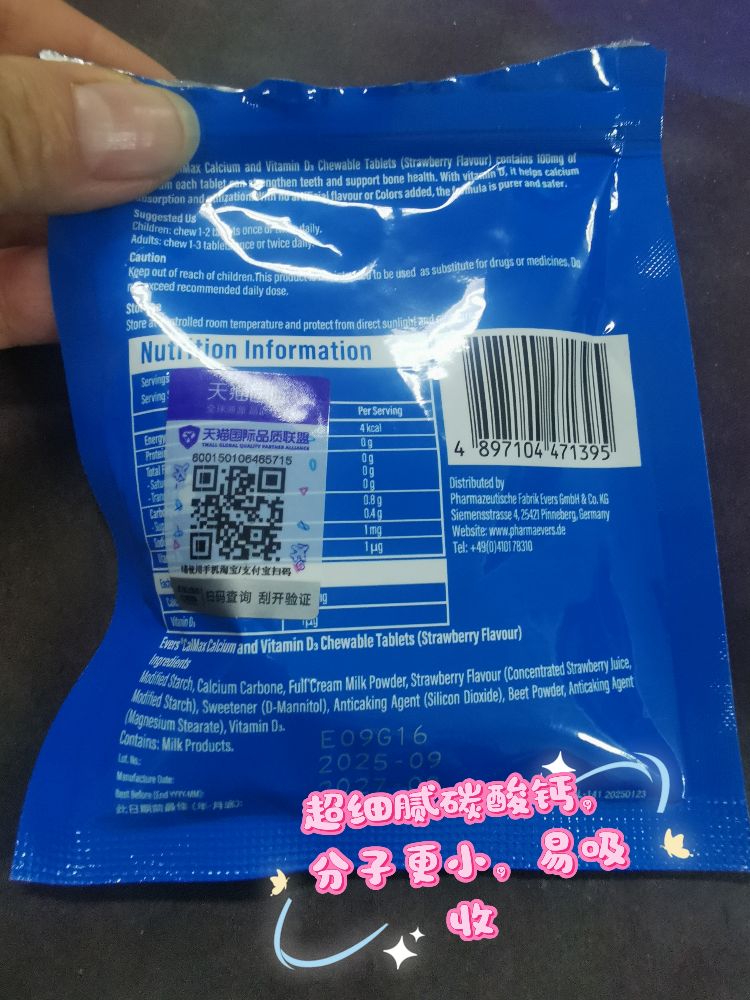 前阵子总愁娃不长个、睡觉盗汗,典型缺钙危机,看到这款德国品牌的儿童钙,小牛奶片的样子,萌萌的超级可爱,娃拿在手里像小零食似的不抗拒。 成分里有400mg碳酸钙+160IU维生素D3,营养全面,比之前买的乳酸钙含钙量高不少,娃每天吃不...