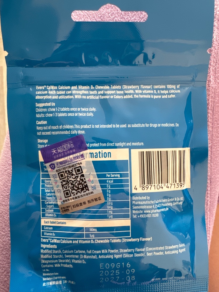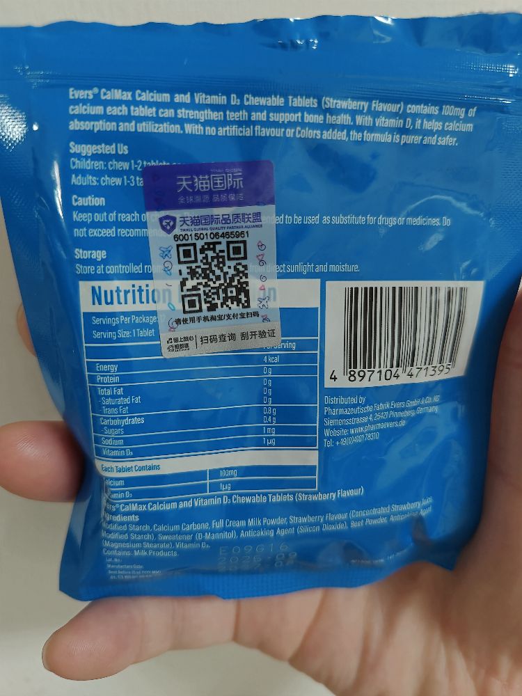 各位宝妈别再愁娃不爱吃钙片啦!最近给娃试了Evers这款钙+D3咀嚼片,直接解决了“喂补剂”的难题! 先看娃的反馈:打开袋子就是甜甜的草莓香,娃以为是软糖,直接伸手要!咀嚼的时候是绵密的酸甜口感,完全没有药片的怪味,现在每天放学都主动问“我的钙糖呢”,不用...