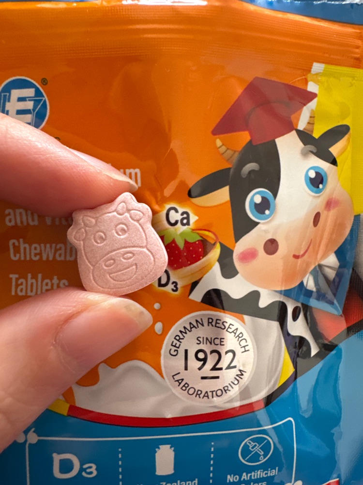 最近发现了一款超棒的儿童钙片——牛博士!✨它家的钙片专为小朋友设计,奶香味十足,微甜,口味比较清淡,草莓味的小朋友都超级爱吃!😋小牛牛颗粒造型,很有童趣,而且是小颗粒,方便吞咽,也可以直接咀嚼。 成分也很安心,添加了维生素D,帮助钙更好地吸收。每天两粒,轻...