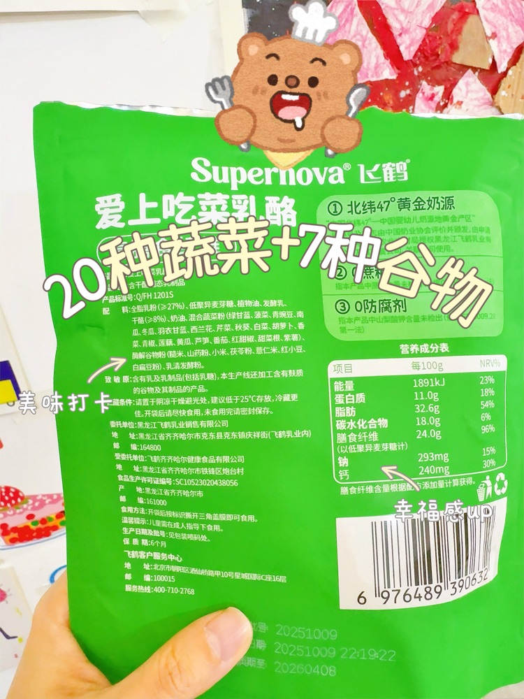 我家娃娃之前是“蔬菜绝缘体”,咱当妈的就怕娃挑食,尤其是不爱吃菜,直到我挖到飞鹤这款爱上蔬菜奶酪,现在每天都主动要着吃! 拆开包装我家娃就凑过来了,乳黄色的奶酪上能看见一丝丝蔬菜碎,胡萝卜的浅橙、菠菜的嫩绿混在里面,看着就有食欲。他...