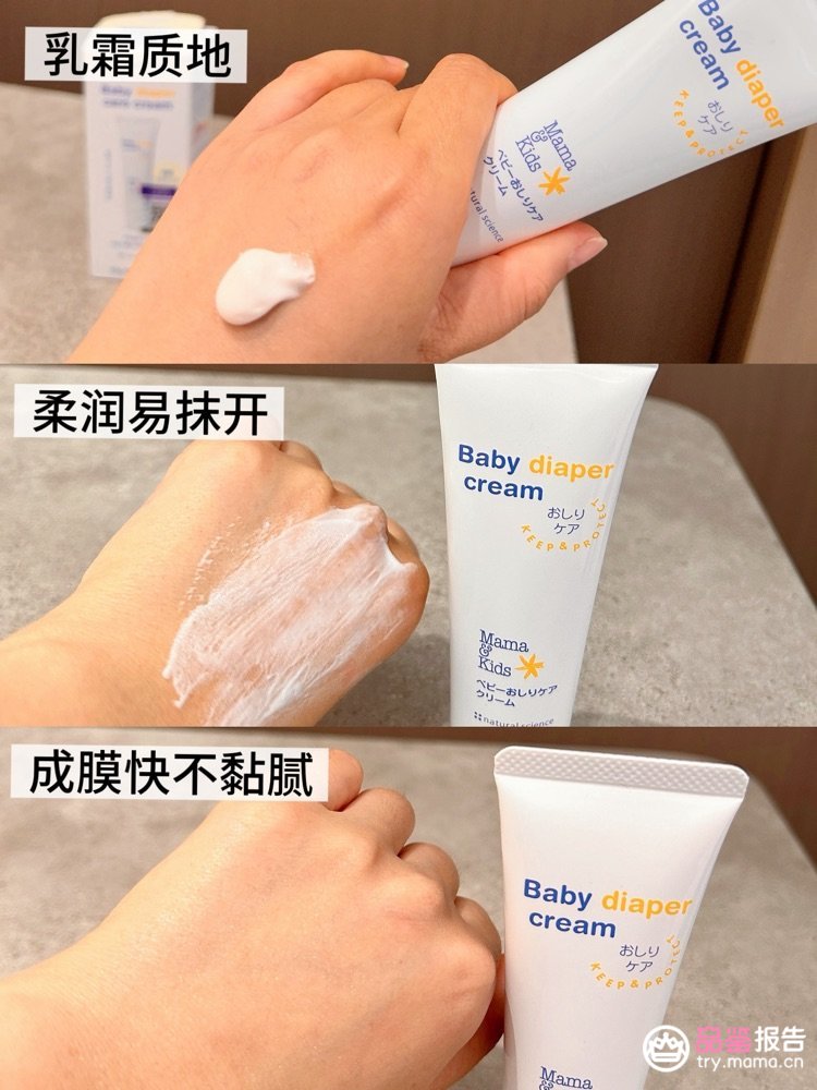它的质地,简直惊艳到我🤩!是那种轻薄好推开的奶霜质地,轻轻一抹,瞬间就被皮肤吸收了,完全不会黏糊糊地蹭在尿不湿上,干净又清爽👏