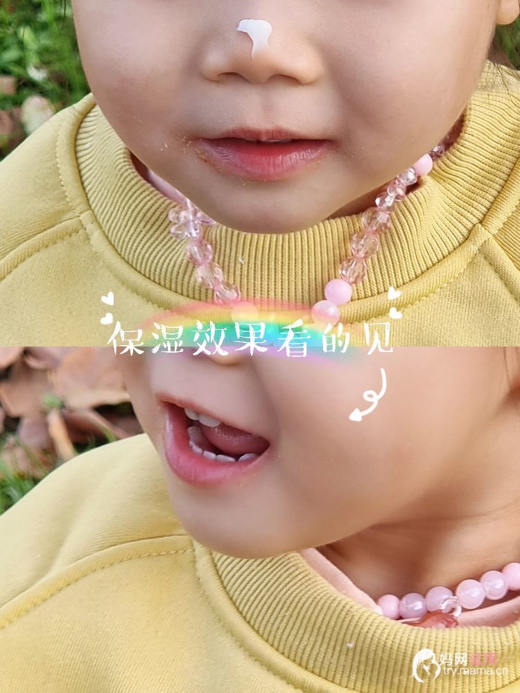 这几天女儿的小嘴巴老是干燥起皮,涂这个保湿霜效果还是明显的,玩了一下午保湿效果都不错。还有洗澡以后涂干痒的地方马上就舒服了,真不愧是保湿小能手哈!放妈咪包里根本没负担,随拿随用很方便,妈妈也能沾光涂一涂保湿哈!还在犹豫秋冬涂什么给孩子护肤的,速速收下这份推荐哈!