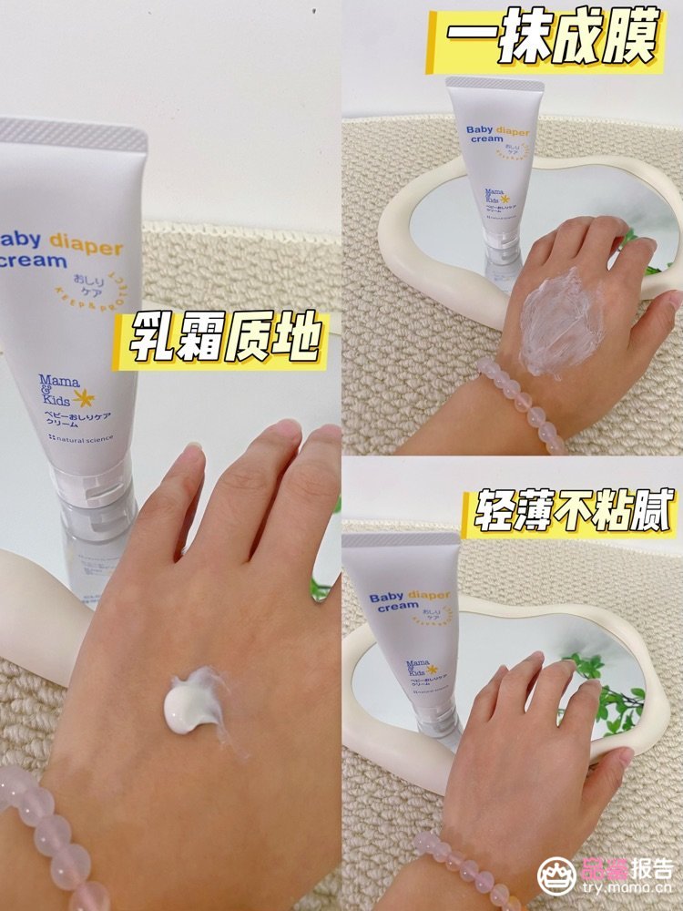 它的质地,精准地拿捏了“保护”与“清爽”的平衡。 它是轻盈的乳霜质地,延展性非常好,轻轻一推就能均匀涂开,在皮肤上形成一层透明的保护膜。这一点我特别欣赏,因为它完全避免了传统护臀膏那种厚重、难清洗的困扰。每次给宝宝换完纸尿裤,清洁干燥后顺手涂上,整个过程行云流水,宝宝没有丝毫不适,我自己也觉得清爽不粘手。
